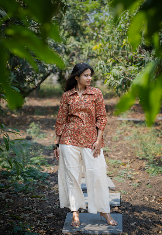 Sanchi Double Paisley Hand Block Print Organic Cotton Short Top