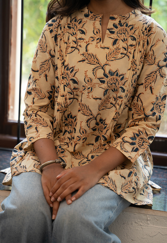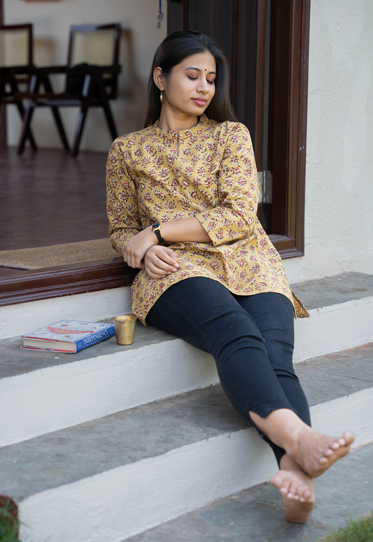 Maalini Mustard Hand Block Print Organic Cotton Short Top