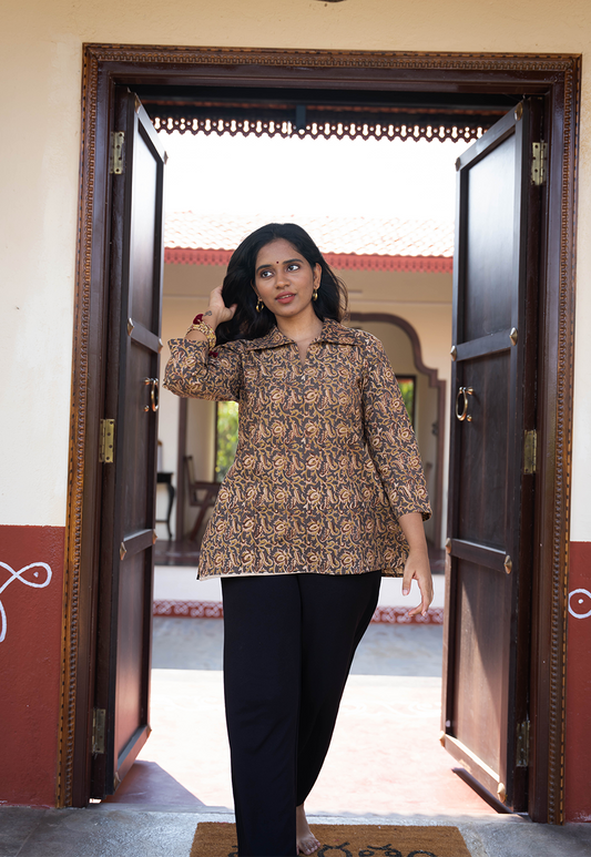 Aara Paisely Hand Block Print Organic Cotton Short Top