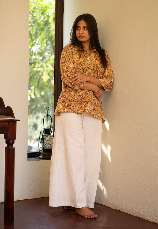 Chaya Mustard Hand Block Print Organic Cotton Short Top